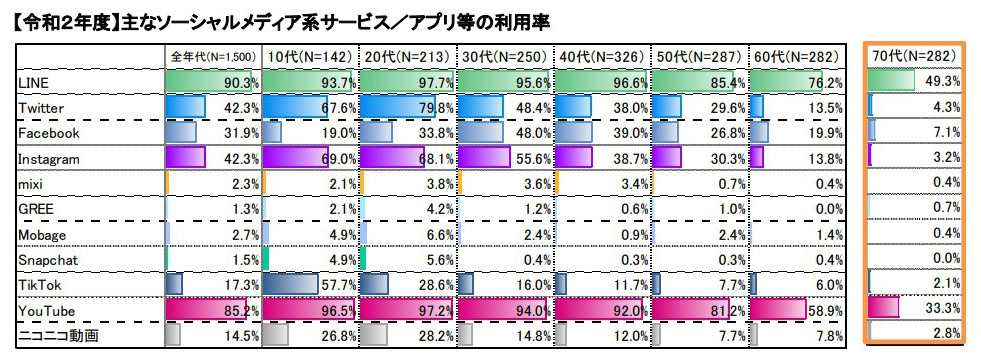 消費者がどのようなメディアに多くの時間を費やしているかを参照する際には、総務省の「情報通信白書」をエビデンスとして活用できます。出典:令和2年度情報通信メディアの利用時間と情報行動に関する調査(令和3年8月 総務省情報通信政策研究所)