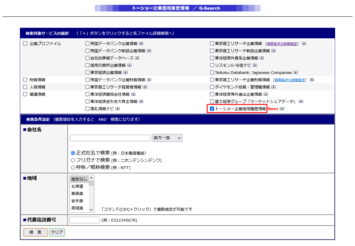 「トーショー企業信用履歴情報」は格安の月会費で利用できるG-Searchデータベースサービスに収録されています。