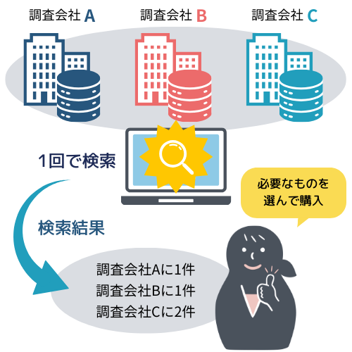 ビジネスデータベースを使用すると、複数の大手調査会社の情報を、個別に契約しなくてもまとめて検索できます。