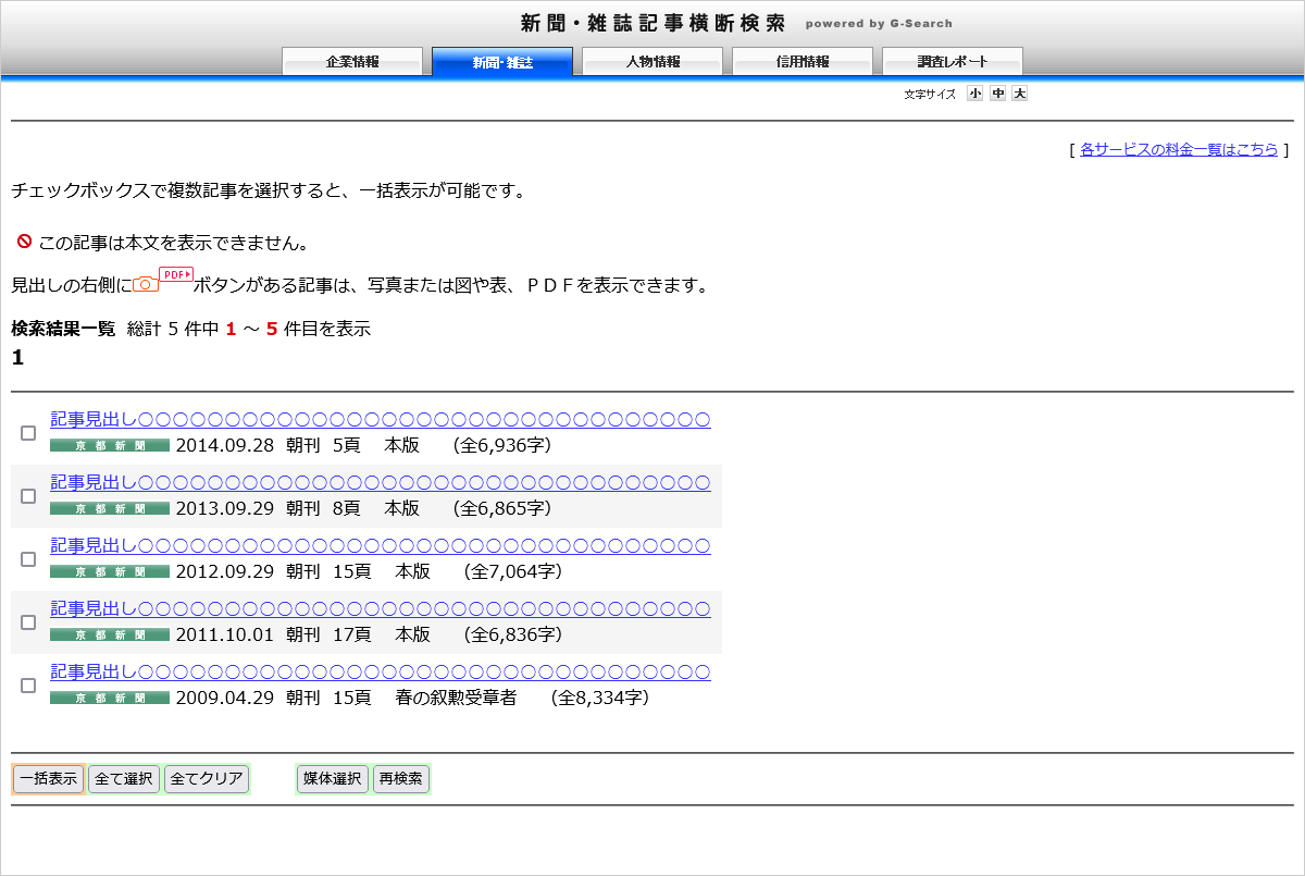 ※対象期間や検索対象紙誌などの検索条件を設定することも可能です。