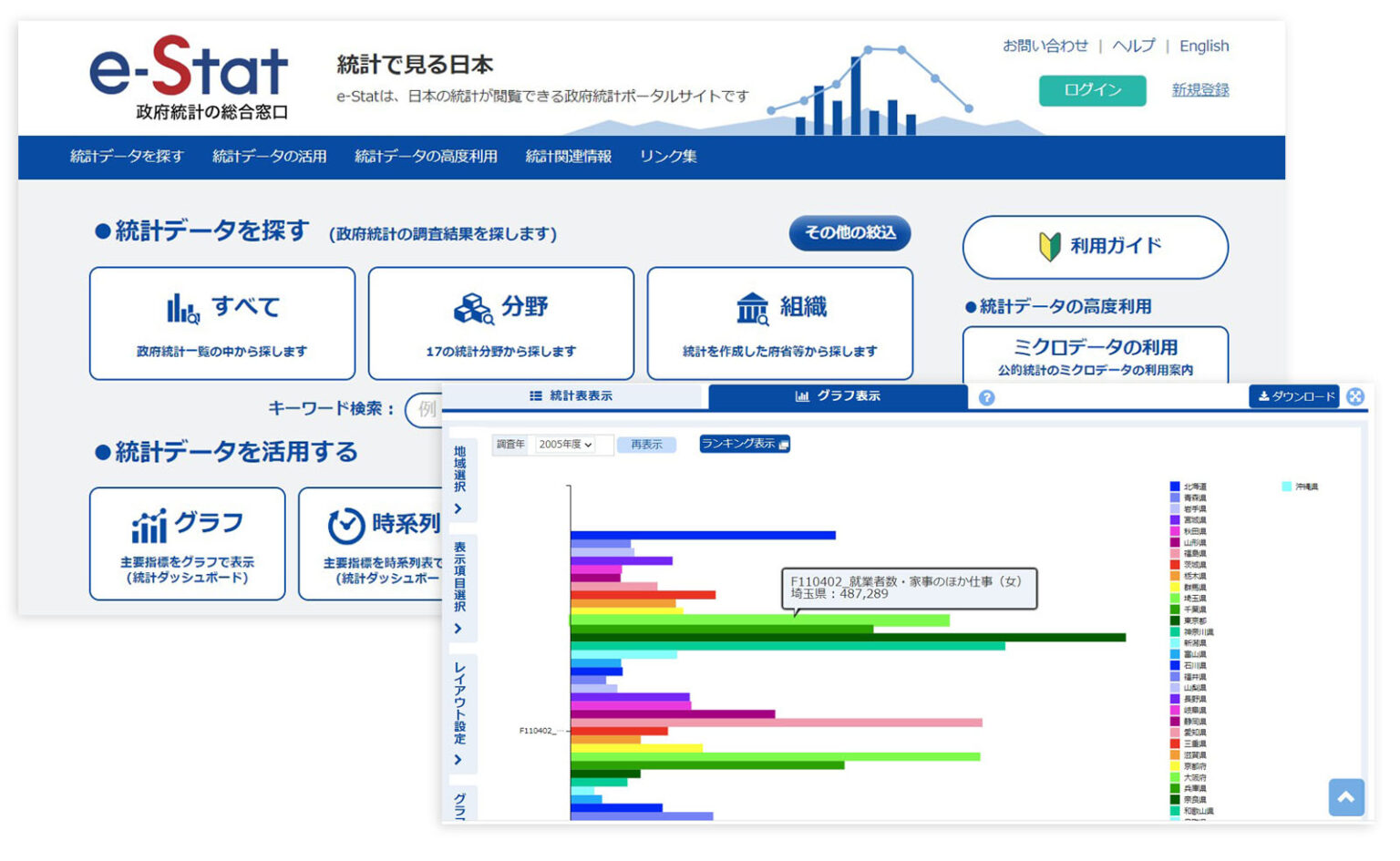 e-Statは総務省の政府統計データの閲覧ができる便利な総合サイトです。