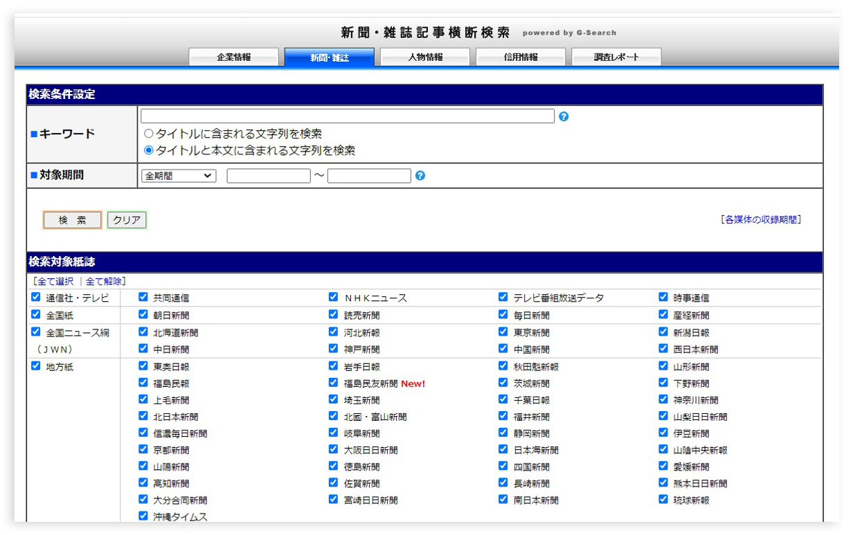 G-Searchサービスの横断検索を使えば、約150の専門業界紙誌から情報を探すことができます。
