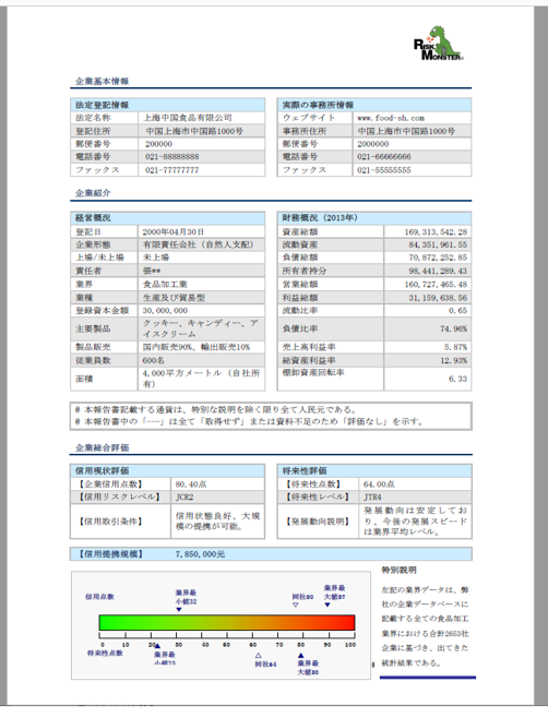 財務評価や支払い能力が確認できる調査レポート(サンプル)